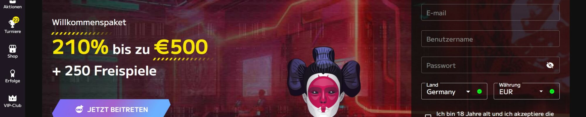 Bis 500€ Willkommensbonus + 250 FS