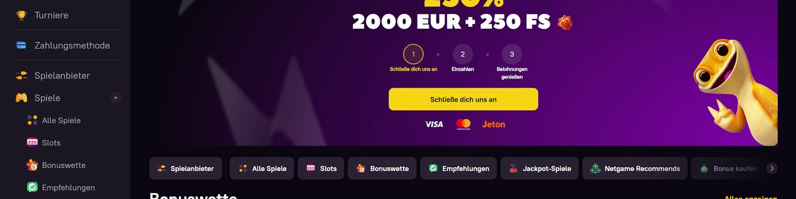 Der Bonus ist ab einer Mindesteinzahlung von 20 € verfügbar.