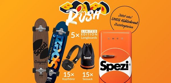 Spezi Gewinnspiel SMEG Kühlschrank Skateboards und Kopfhörer