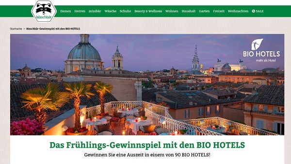 Waschbär Versand Gewinnspiel Bio Hotels Aufenthalt gewinnen