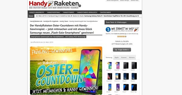Ihr könntet mal wieder ein neues Handy brauchen! Beim Frühlings-Gewinnspiel von den Handy Raketen wird ein Samsung Galaxy ...